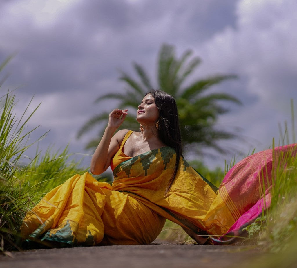 Utsav | Sunshine Yellow Muslin Silk Jamdani Saree