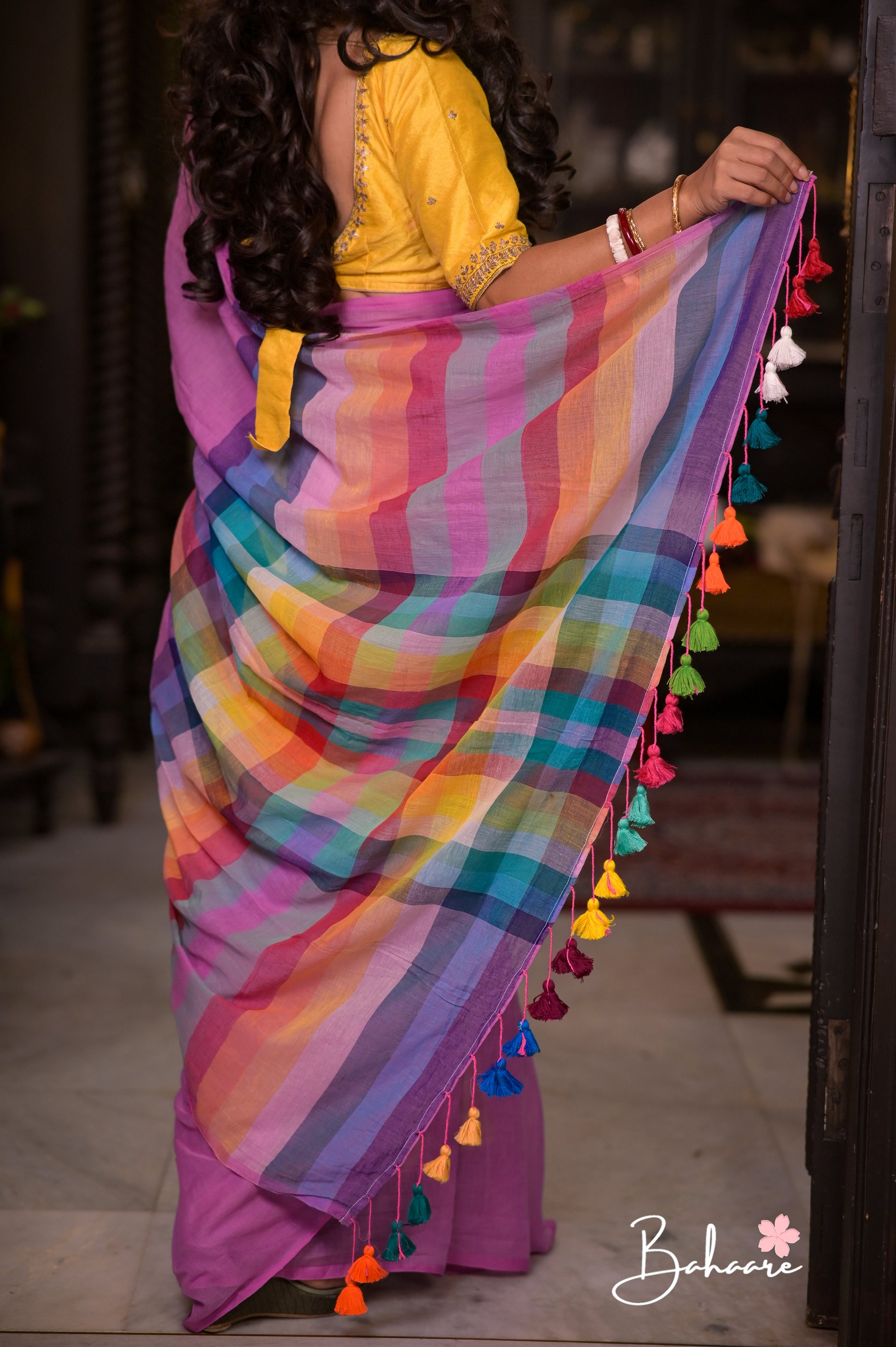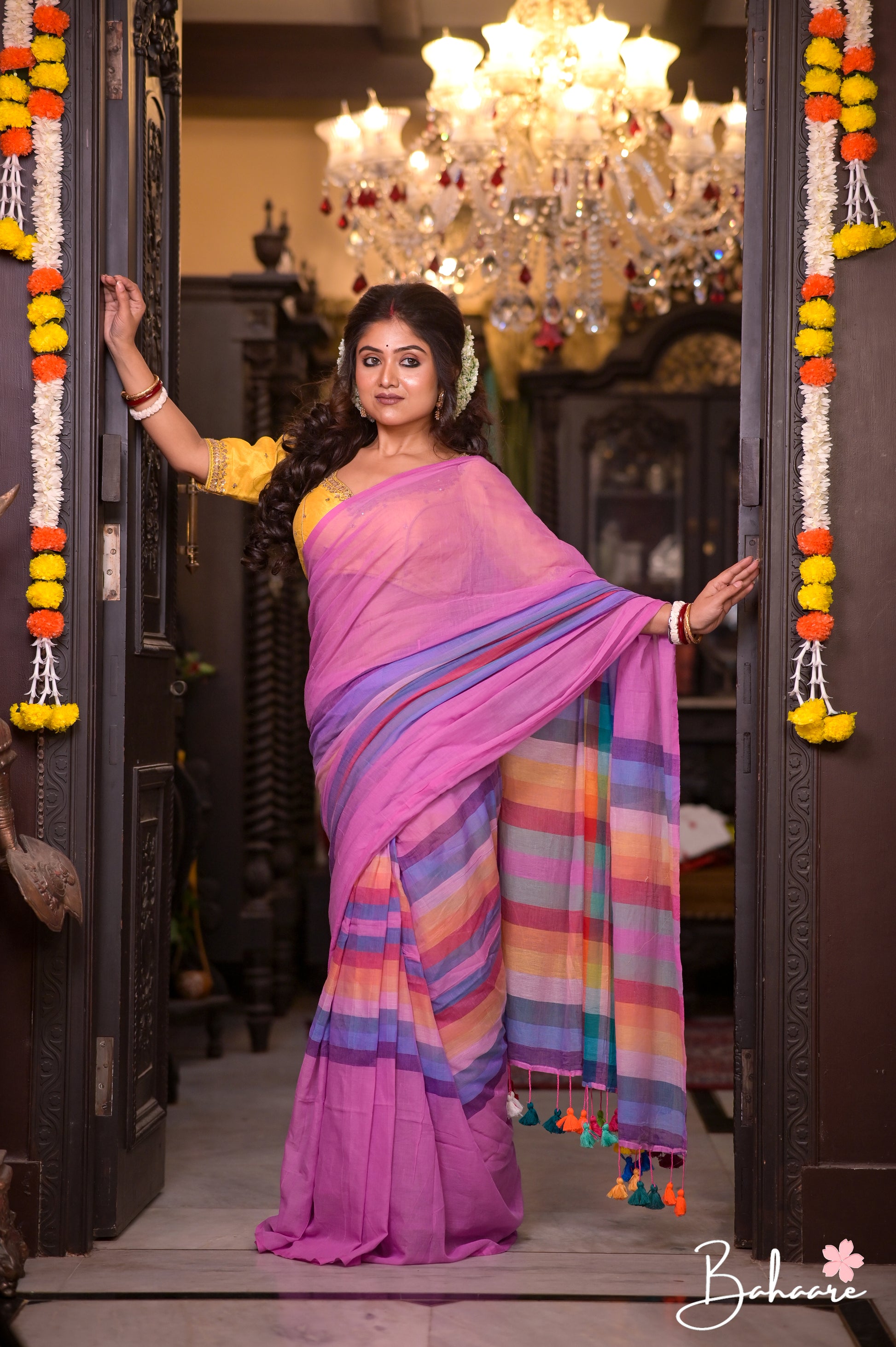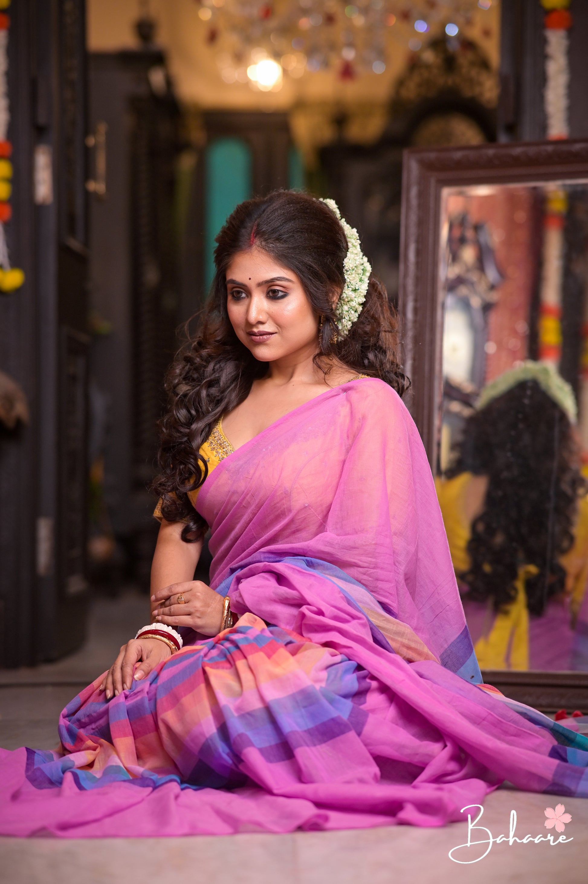 Woven from the softest mul mul cotton, "Noor" drapes effortlessly, offering unparalleled comfort and sophistication for every occasion. Its lightweight fabric ensures grace in every step, while its cultural resonance adds depth and charm to your ensemble. Perfect for those who value tradition and seek to express their inner glow, "Noor" is more than just a saree—it is a reflection of the light within you, illuminating your wardrobe with timeless beauty.