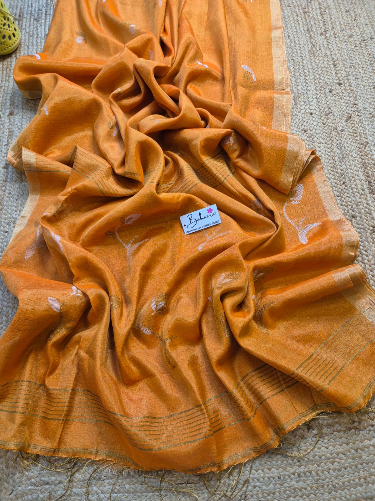 Woven with the whispers of spring, its soft, breathable linen drapes beautifully, mimicking the delicate petals dancing in a gentle breeze. The addition of shimmering tissue threads adds a touch of sophistication, perfect for catching the soft light of a spring afternoon. More than just beautiful, this saree is designed for comfort. The breathable linen ensures you stay cool and comfortable throughout any warm-weather occasion.